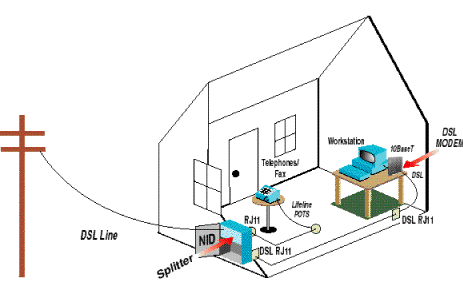 ADSL was started up as the Phone Company's way to compete with cable TV by delivering both TV and phone service on the plain old copper phone line. Of course now ADSL is also a good candidate for high speed Internet access. ADSL was originally designed so that it could still be used as a regular phone line if the power happened to go out. The "A" stands for "Asymmetric", meaning the Phone Company can send lots of data to the customer, but the customer can't send much to them at all. At the beginning only a tiny uplink of 16 or 64kbps was supported now ADSL can support up to ten times that much. The idea for ADSL was spawned by Joe Leichleder in 1987, he was a Bellcore researcher and the first idea for it was analog to digital conversion at the subscriber end of an advanced transmission technology over a twisted pair copper line. ADSL was designed to provide megabit access for interactive video (video on demand, video games, delayed TV segments, etc.) and high speed data communications (Internet access, remote LAN access, other network access) but it is also perfect for surfing the web. In the 1990s, vendors developing video-on-demand products started using ADSL technology, with different speeds for sending and receiving channels. Although the video idea didn't pan out, the Internet did and ADSL emerged as a hot product for residential Web surfing. The only thing missing was the telephone line, so frequency-division multiplexing (FDM) was added to ADSL to reserve a separate 4-kHz POTS (plain old telephone system) channel below the higher frequency data band. ADSL uses a single wire pair. Speeds on the receiving channel can climb to 6 Mbit/s, but actual performance depends on the condition of the line being used. There was a DSL Forum formed towards the end of 1994, and this was set up to help telephone companies and their suppliers realize the great market potential of ADSL. This forum has two forms of assistance which are technical and marketing. The Forum's marketing programs attempt to uncomplicate the technical complexity of it and to spread the news concerning ADSL. The output of the forum to the public mixes the tutorial with the promotion of this device.